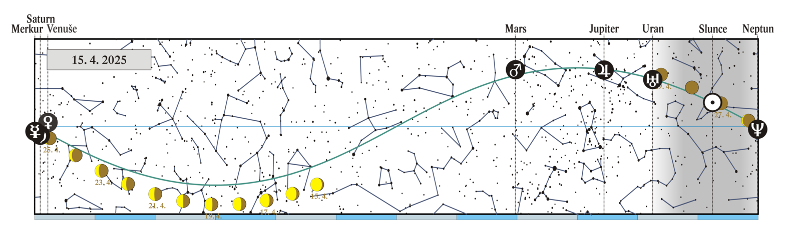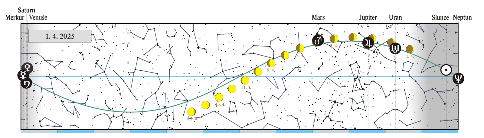 Měsíc v konjunkci s Uranem (Uran 4,09° jižně) |