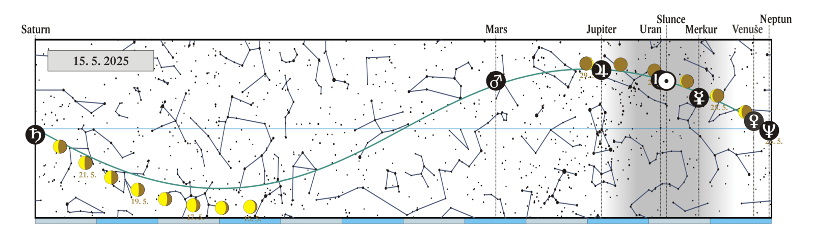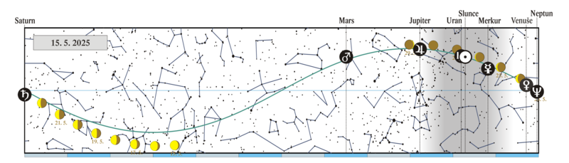 Měsíc v konjunkci se Saturnem (Saturn 1,97° jižně) |