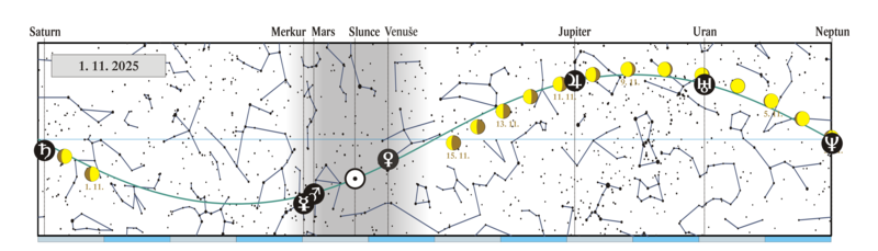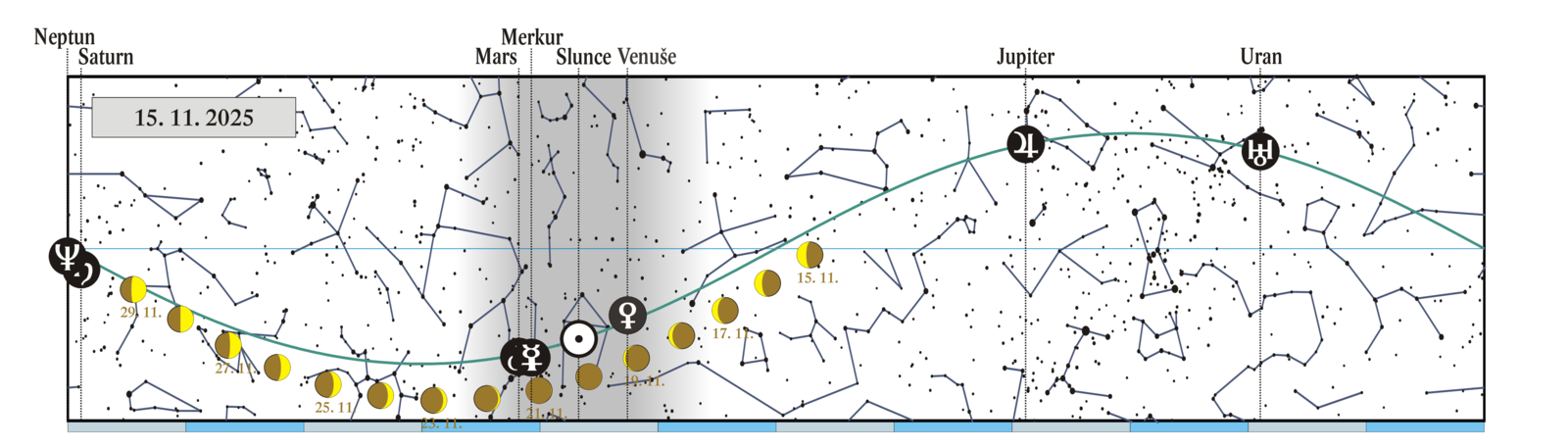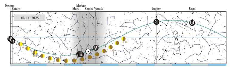 Měsíc v konjunkci se Saturnem (Saturn 2,52° jižně) |