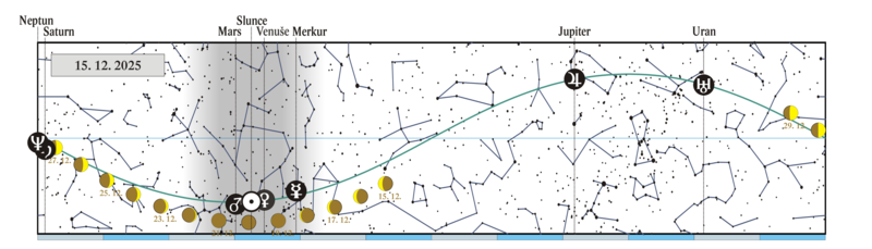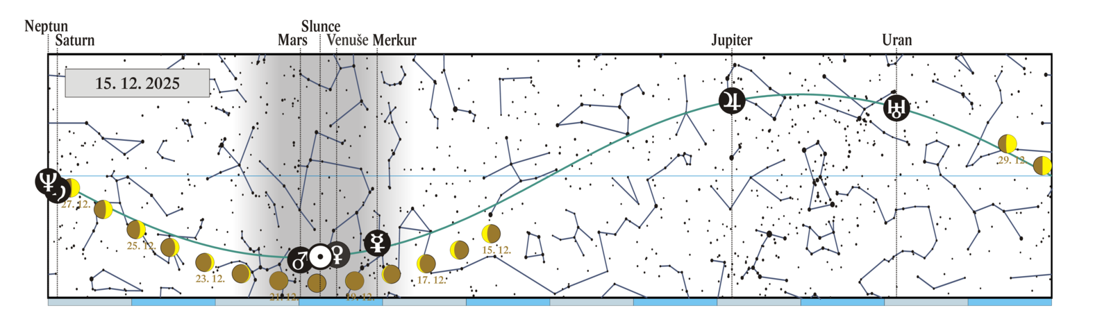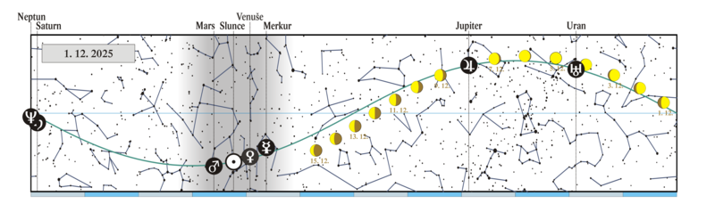 Měsíc v konjunkci s Jupiterem (2,82° jižně) |
