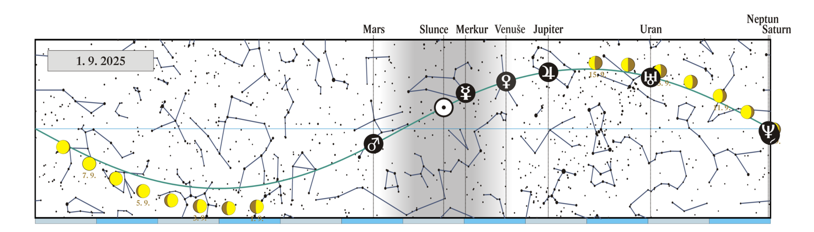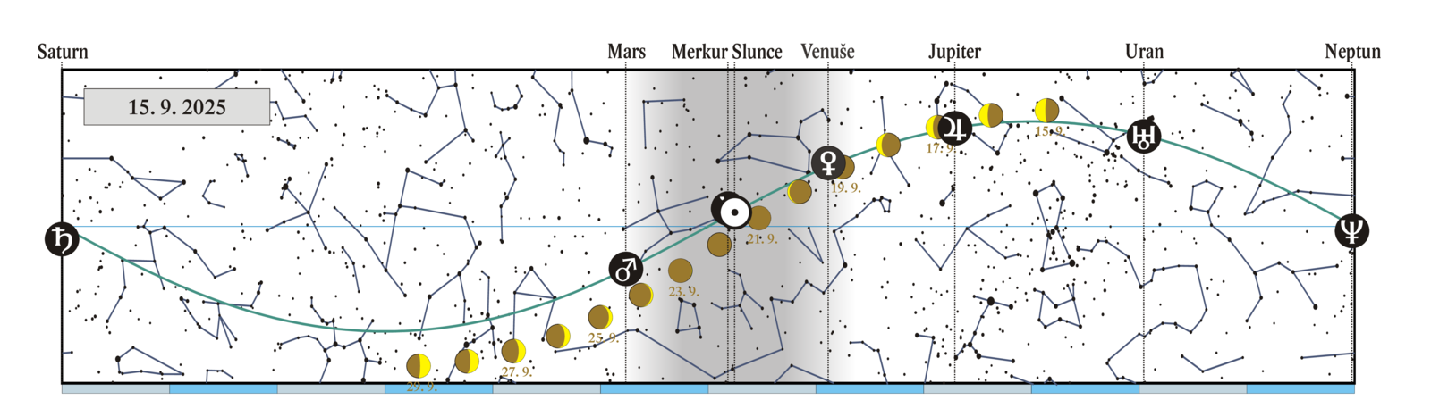 Saturn v opozici se Sluncem (+0,6 mag) |