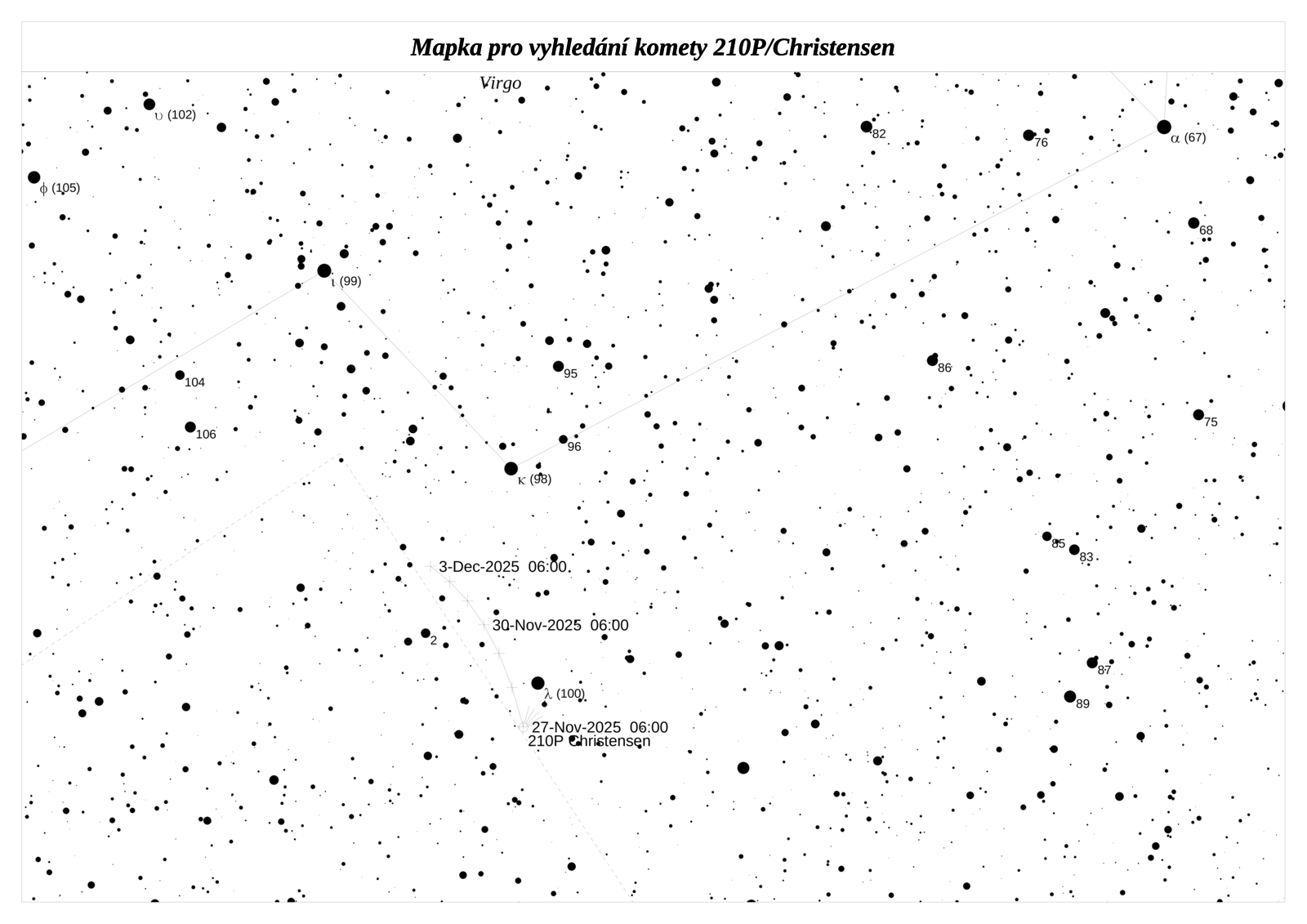 210P/Christensen objevil Eric Christensen dne 10. června 2003 z observatoře Catalina Sky Survey. Jedná se o poměrně slabou kometu s perihelem uvnitř zemské dráhy, která se často přibližuje k Jupiteru. Přiblížení k obří planetě v letech 1984 a 1996 snížilo vzdálenost v perihelu z 0,66 na 0,55 AU. Kometa se často přibližuje i k Zemi, díky čemuž ji můžeme krátce pozorovat. Její slabá aktivita se výrazněji projevuje jen v blízkosti Slunce. Kometa se přiblíží k Zemi na vzdálenost 0,430 au, ale tehdy ještě nebude pozorovatelná. Maximální jasnost by mohl příznivě ovlivnit efekt dopředného rozptylu a kometa by mohla dosáhnout jasnosti až 8,5 mag.