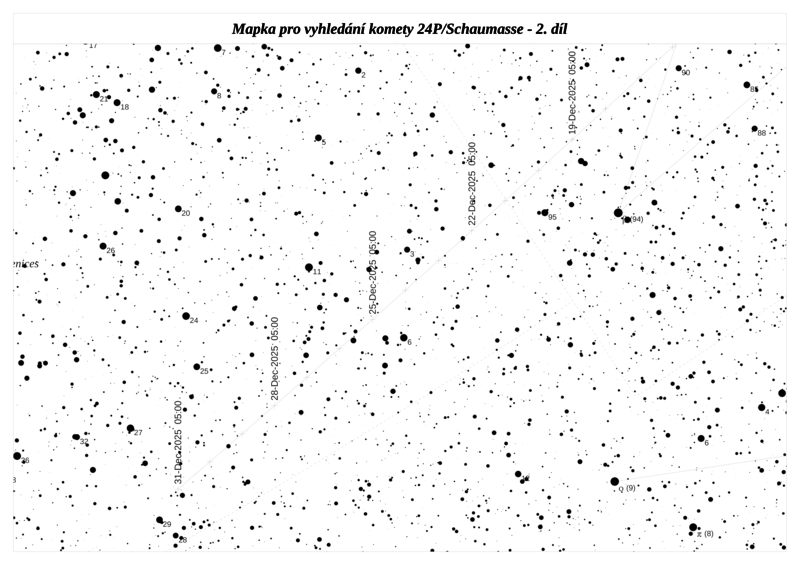 O kometě C/2023 A3 (Tsuchinshan-ATLAS) se psalo v loňské ročence, letos již bude dohasínat a bude velice slabá, ale přesto by mohla být začátkem roku ještě v dosahu větších dalekohledů (vizuálně okolo 12,1 mag).
