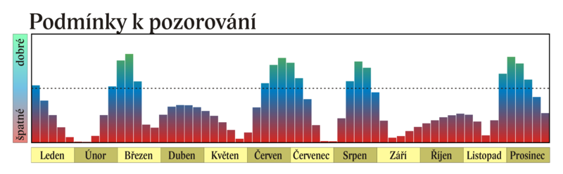 Po dolní konjunkci 1. 8. v 1 h máme nejlepší letošní příležitost spatřit Merkur na ranní obloze. Období viditelnosti začíná 14. srpna. Merkur stoupá nad východní obzor a zjasňuje. V maximální západní elongaci (19° od Slunce) je 19. 8. v 11 h. Poté začíná klesat k obzoru, ale jasnost stále roste až k -1,3 mag. Díky tomu je Merkur pozorovatelný až do začátku září. Okolo 3. 9. období viditelnosti končí. Severně od Merkuru se po celé toto období nacházejí planety Venuše a Jupiter.