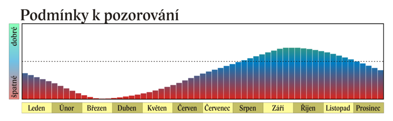 Dobře pozorovatelný, a to v první polovině noci, je Neptun až do konce roku. Koncem prosince se na konci astronomického soumraku nachází téměř 38° nad jižním obzorem a zapadá po 23. hodině.