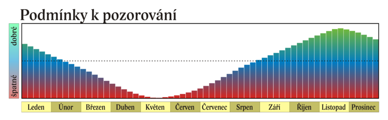 Období nejlepší viditelnosti Uranu trvá od konce srpna do konce roku, kdy je planeta nad naším obzorem po celou noc či po většinu noci. Od zastávky 6. 9. v 6 h se Uran do konce roku opět pohybuje zpětně. Nejblíže Zemi (18,509 au) se Uran nachází 21. 11. v 11 h, ve 13 h se pak ocitá v opozici se Sluncem, při níž dosahuje +5,6 mag. Koncem roku Uran vrcholí ve 21 h a zapadá před pátou hodinou ranní.