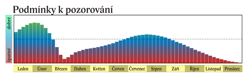 Během listopadu se pak Venuše kvůli nízké a nadále rychle klesající deklinaci stává nepozorovatelnou a tento stav trvá až do konce roku.