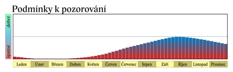 Na začátku srpna však vystoupá na konci astronomické noci (ráno) do výšky 25° nad JV obzorem, s jasností +8,6 mag už je pozorovatelná. Dne 16. 8. ve 2 h je Ceres stacionární a v následujícím období se až do další zastávky 28. 11. v 0 h pohybuje zpětně. Opozice se Sluncem nastává 2. 10. ve 14 h. V té době dosahuje Ceres jasnosti +7,6 mag a vrcholí ve výšce téměř 30°. Stále se pohybuje souhvězdím Velryby, v němž setrvá až do konce roku.